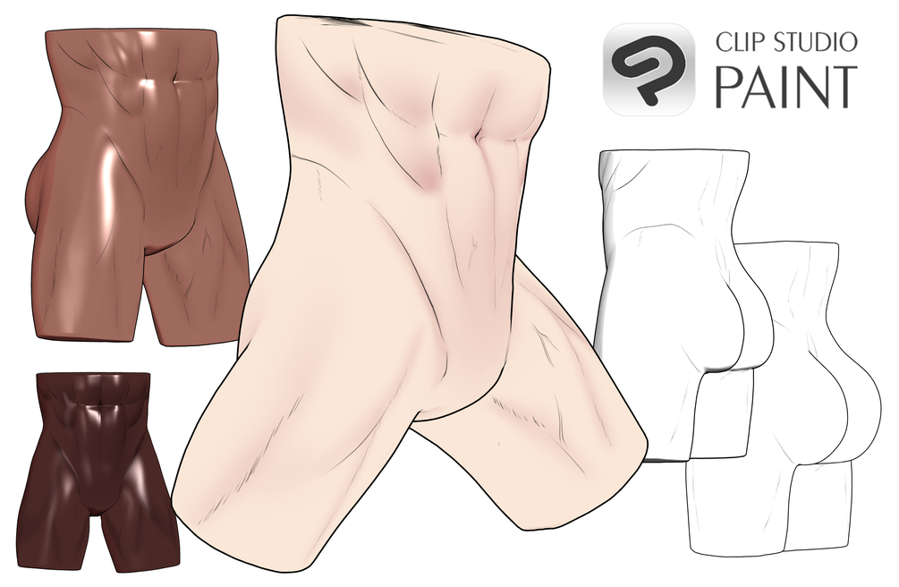 3D Men Lower Part + 2 Ass for clip studio user, with rigging and texture options
